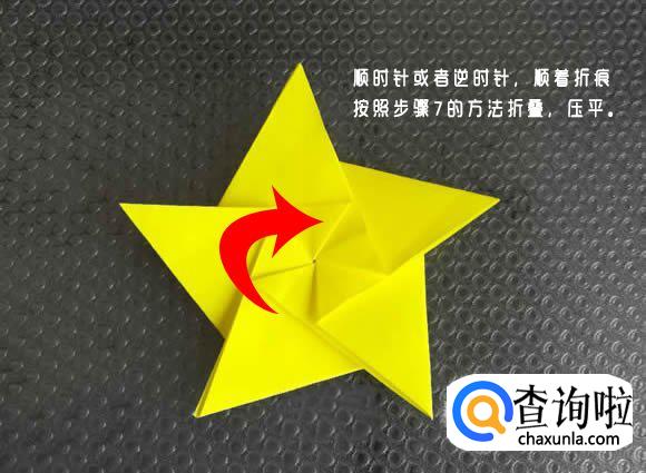 顺时针或者逆时针,顺着折痕,按照步骤7的方法折叠,压平。