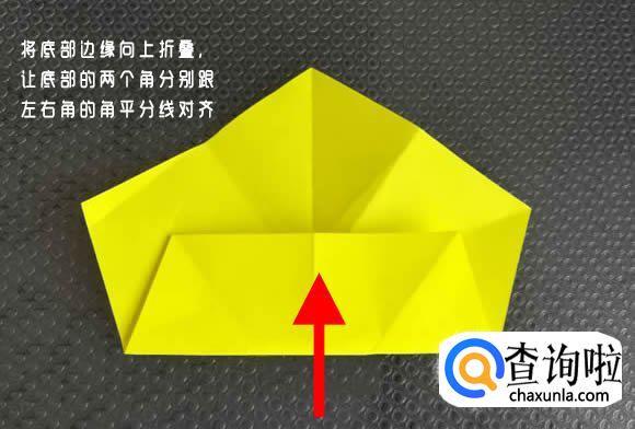 将右下角向上折叠,折到X折痕的中间点。再将这个角向下折到边缘。