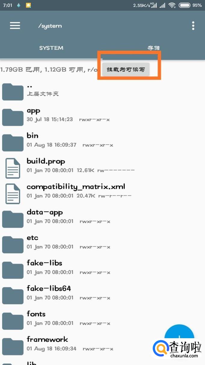 首先安装re文件管理器,手艺root权限,打开之后点击挂载为可读写。