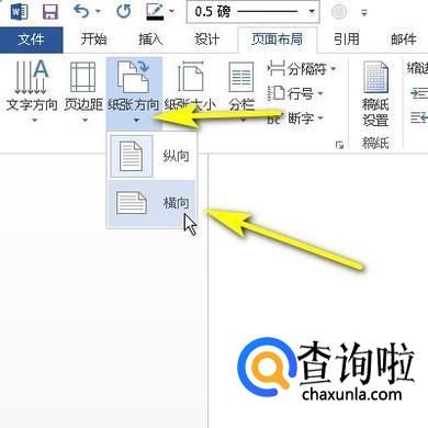 接着,点击纸张方向的下拉按钮,弹出的两项内容中选择:横向