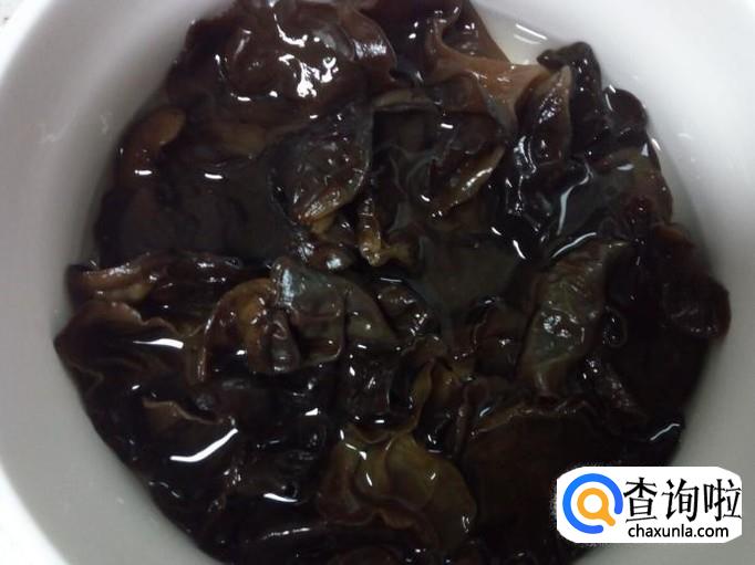 用温水快速泡发木耳,把泡发好的木耳收拾清洗干净,控干水分。