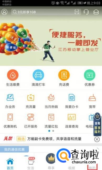 进入掌上营业厅之后,我们点击右下角我的;
