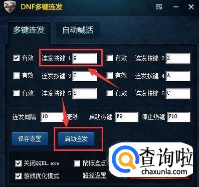 在DNF多键连发界面会看到连发按键设置好后点击启动连发,如图