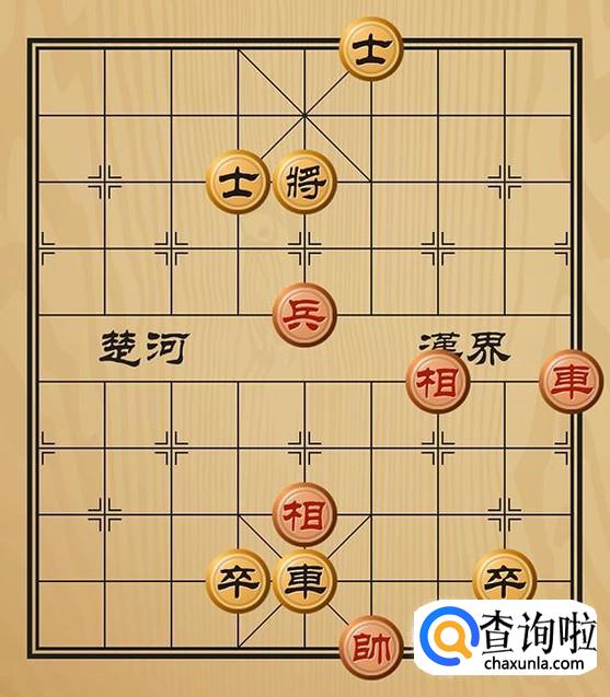 红方车四进一吃掉黑方的士将军,黑方只能将5进1躲避。
