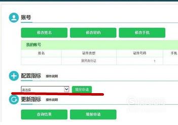之后进入到个人中心,选择好“配置指标”后,点击“填报申请”