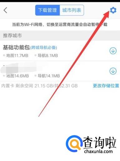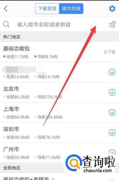 回到上一页面,选择“城市列表”,然后在搜索框中搜索自己所在城市,将其下载下来即可,这样以后就可以免流量导航了,如图所示。