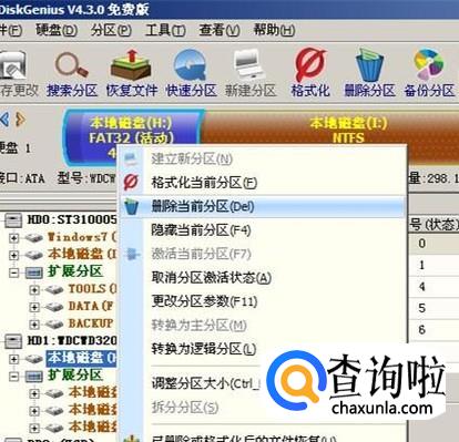 在上面的第一个分区空间上右键单击,在弹出的菜单里选择“删除当前分区”。