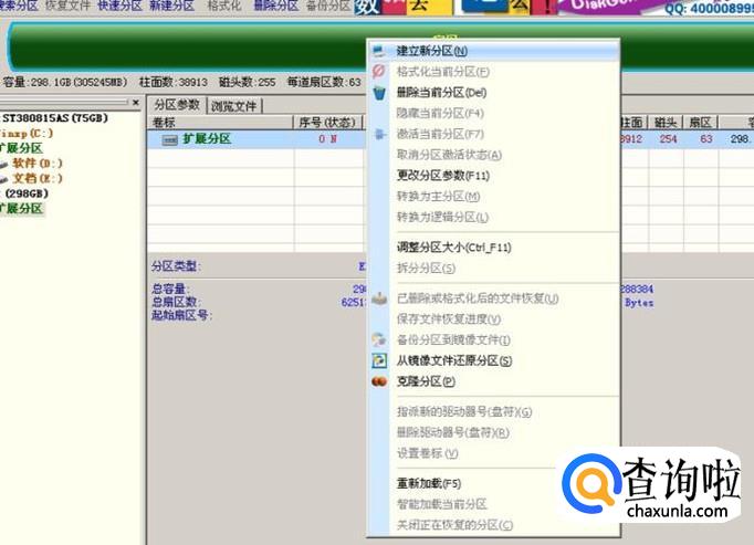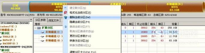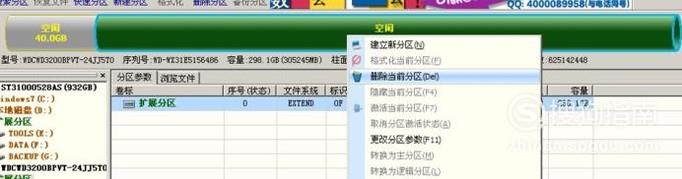 然后同样的方法一次删除其他的分区,这几个分区删除完后成为一个绿色空间,并不像第一个“活动分区”一样是灰色的,这是因为它们由原来的几个“逻辑分区”变成了一个“扩展分区”。所以再次在绿色空间上右键单击,再次选择“删除当前分区”。