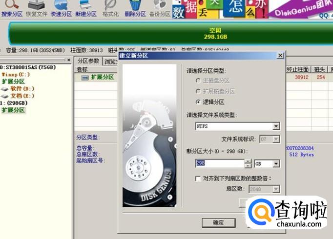 这次软件会自动选择分区类型为“逻辑分区”,只需要点下边的“确定”即可。