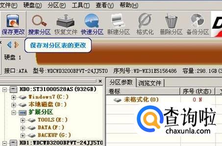 然后点击左上角的“保存更改”,会对新分区进行格式化。完成后移动硬盘就可以使用了。