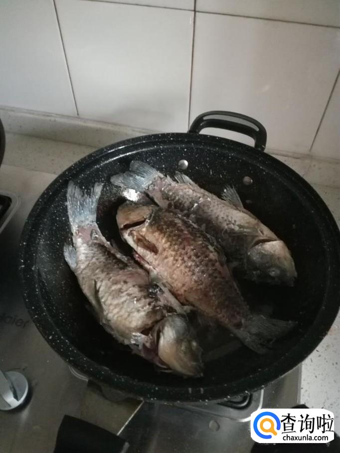 接着将洗好的鱼倒进锅里,烧小火将鱼煎一会,接着将鱼翻一面,接着煎炒,直到鱼两面煎黄为止。