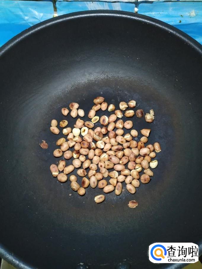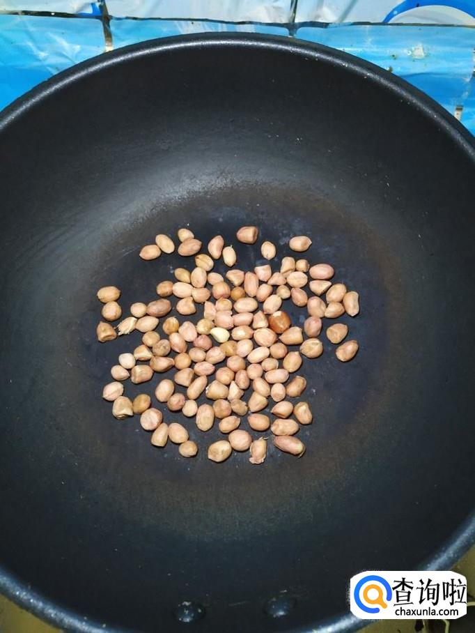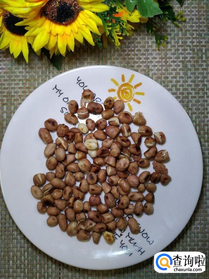 炒锅中不要放油,直接将花生倒入锅中,小火慢煎,煎熟为止。也可以用砂锅炒,或者直接在微波炉中转一下就可以了。
