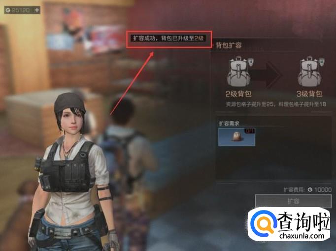 之后再点击页面右下角的【扩容】按键,这样就能完成背包扩容的操作了。