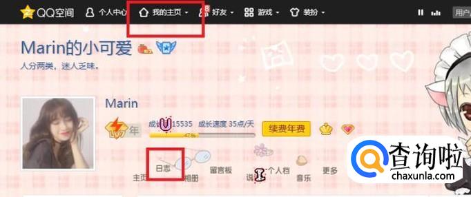 进入我QQ空间以后在最顶上有一个个人中心,我们进入自己的日志选项。