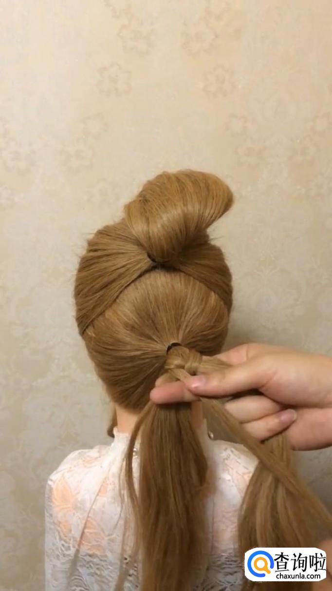 将下面的头发也扎好,扎完后,将头发变成鱼骨辫。