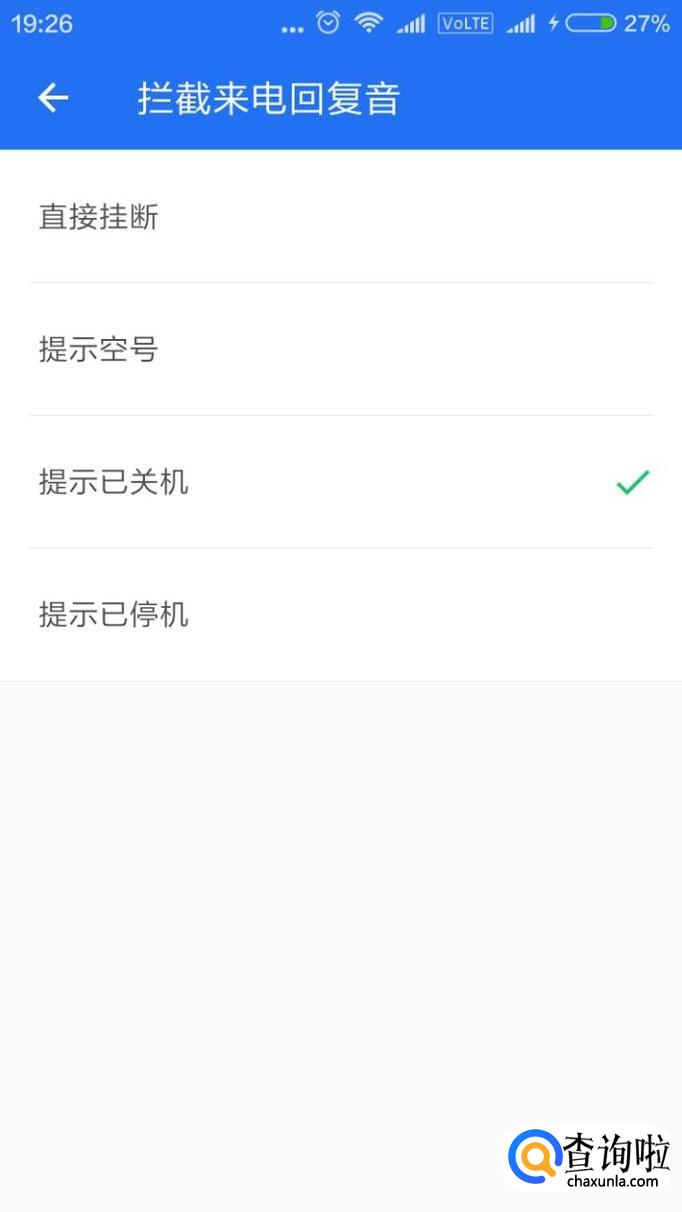 设置成黑名单以后,在返回提示音那里,点击进入设置,返回音为提示已停机。这样设置以后,只要该人再来电,拒接以后,就会提示已停机。