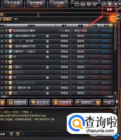 首先,进入cf游戏界面,点击右上角的“选项”,进入设置界面。