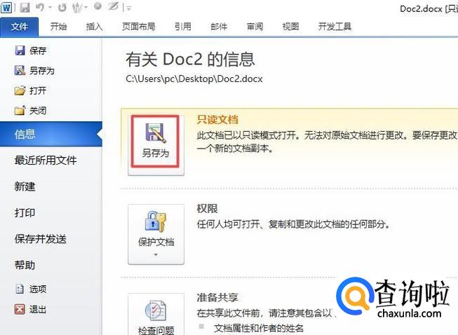 进入之后,我们看到上方显示的是只读,我们点击文件;