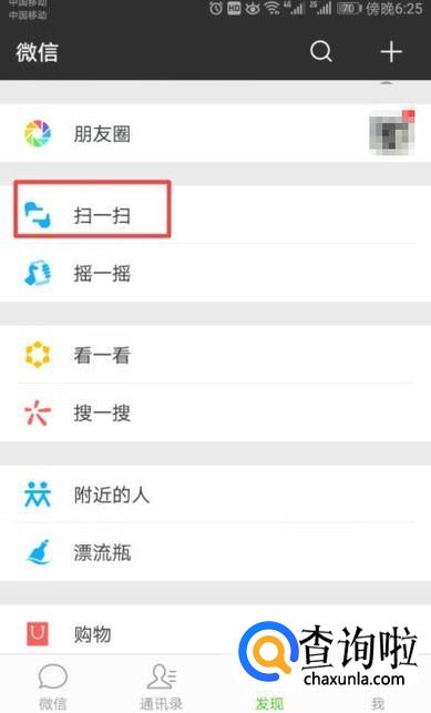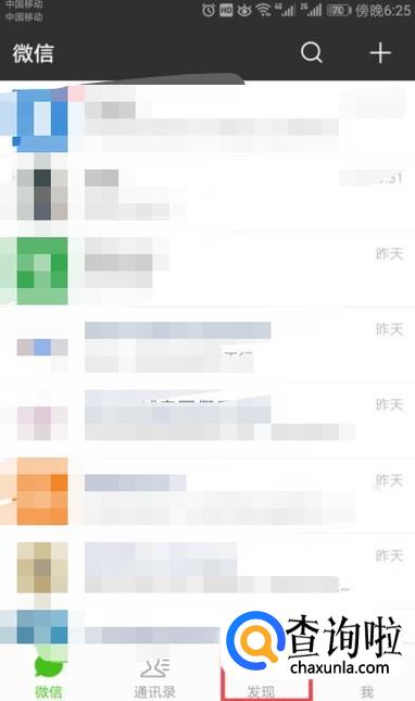 进入微信后,我们点击发现,如图所示;