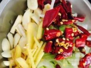 准备配料,大蒜切片,老姜切片或切丝,辣椒、葱切段备用。