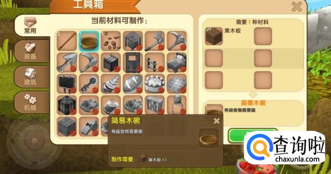 简易木碗是由果木板制作而成的,我们可以在野外采集一些果木,然后制成果木板,再合成简易木碗。