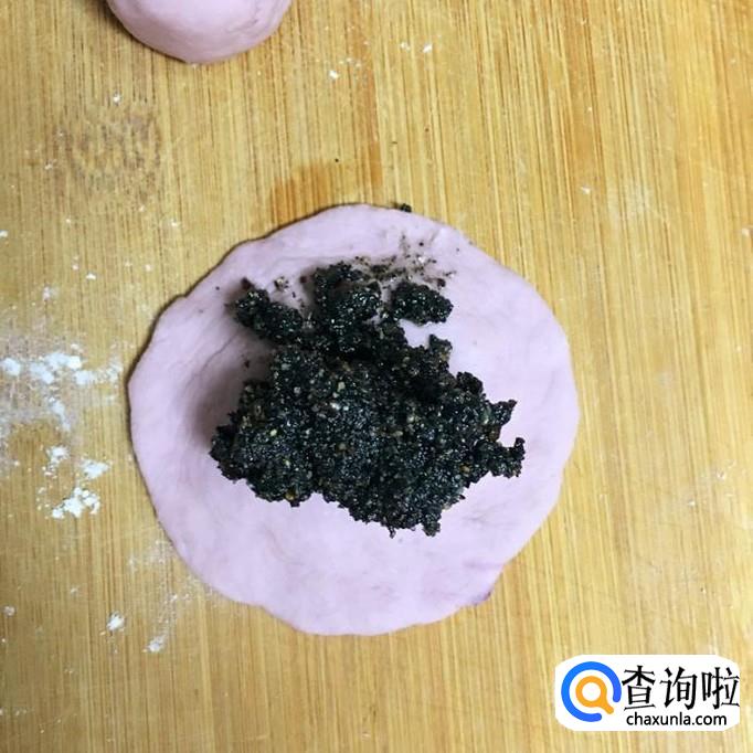 用紫薯和面做成的小餐包,再包入香甜的芝麻核桃馅,不仅颜色漂亮,而且营养也更为丰富,搭配一杯牛奶,再加上一个煎蛋,就是一顿丰盛的早餐了。