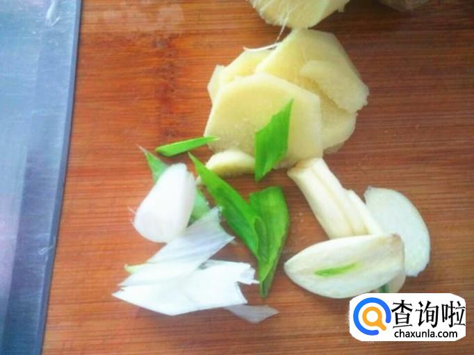 准备几片生姜,一瓣大蒜切成片,一些葱花。生姜一定要去皮,天气凉了,生姜性寒,姜皮寒气更重,对胃肠不是很好。