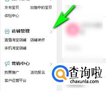 在页面的左侧功能导航中,找到“店铺管理”;鼠标放在其右边的>符号上