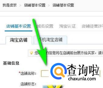 转到另一个页面中,在页面的基础信息这里,就看到“店铺名称”这一项,我们在编辑框内把原来的名字删除,再重新输入新的名字。