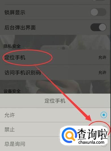 进入之后,找到“定位手机”,点击一下然后选择“禁止”即可。