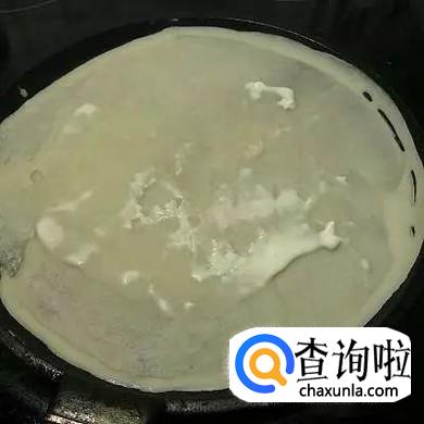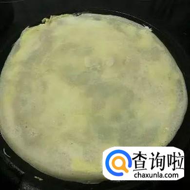 平底锅擦油烧热,取一勺面糊摊成饼皮。