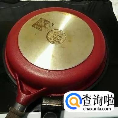 用另一只平底锅辅助翻面。翻好后,将火打开,小火煎一下。