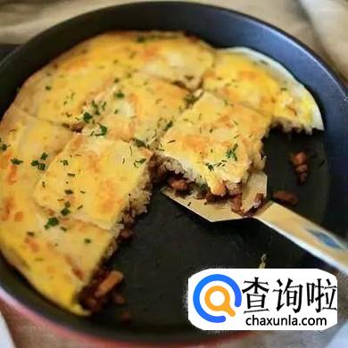 用铲子将其切成小块,并撒上葱花。