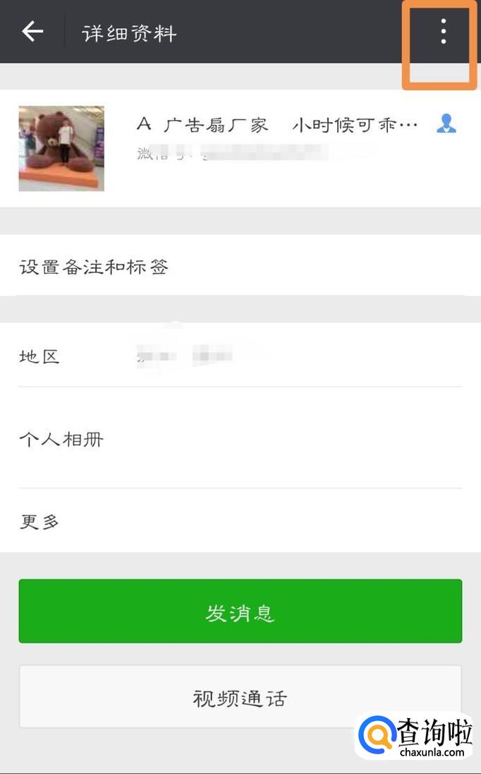 然后点击他的头像,进入他的详细信息,再点击他的头像进入到详细资料。点击右上角框的位置。