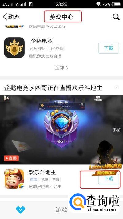 这样就进入“游戏中心”了,想玩哪款腾讯游戏,只要下载下来就行。我们以“斗地主”为例,屏幕往下划,找到“欢乐斗地主”,并点击“下载”。