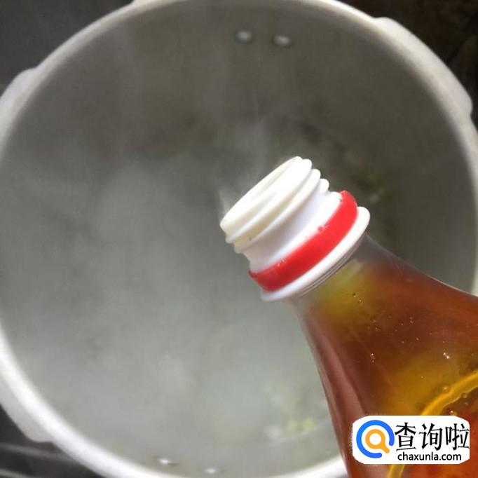 接着往锅中滴入适量的茶油,开大火煮两分钟。