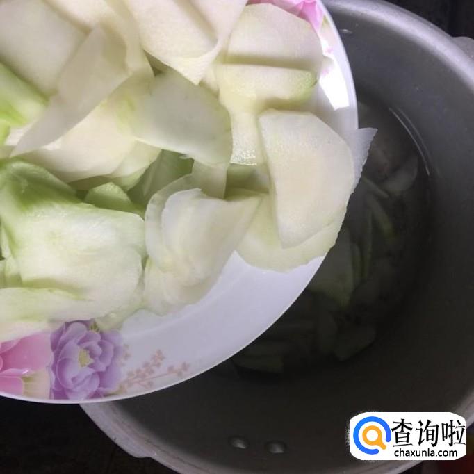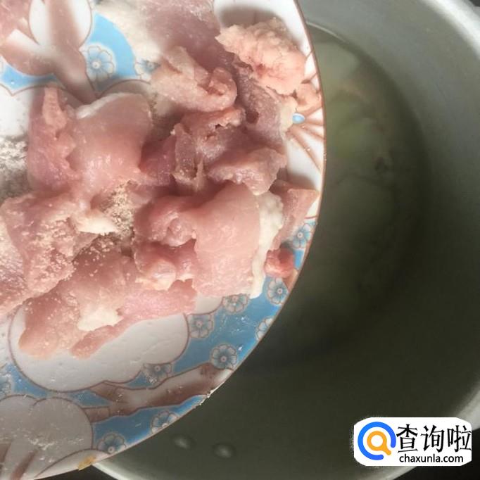 等到菜头压好后,倒入瘦肉片煮5分钟。