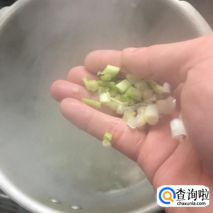 然后把香葱切成葱花,撒入锅中小煮片刻就可以出锅了。