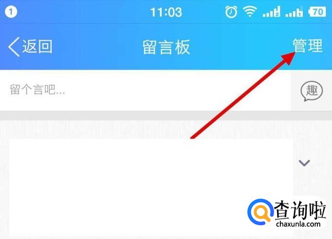 这时就进入了留言板界面啦!我们在右上角会看到有一个“管理”。