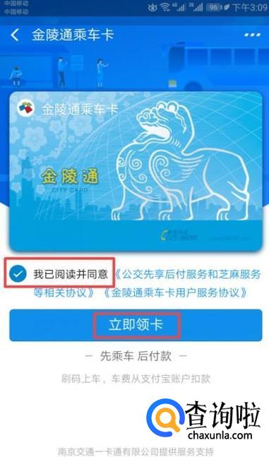 之后我们勾选上我已阅读并同意,然后我们点击立即领卡,之后我们进行授权,然后就会出现一个二维码,之后我们就可以用这个二维码进行扫码乘车了。