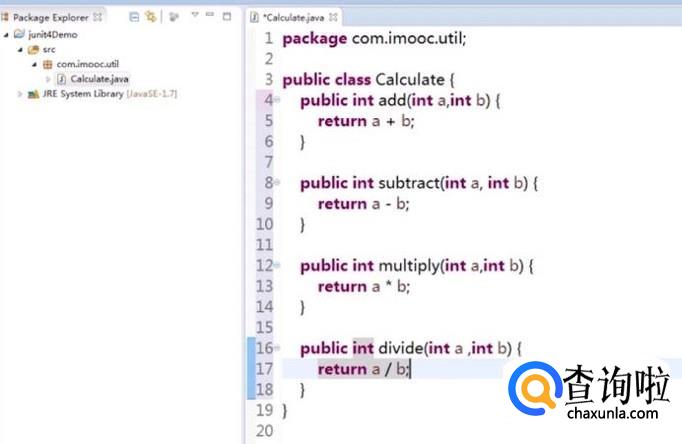 然后在新建的类中,我们输入如下的方法,主要是加减乘除的功能