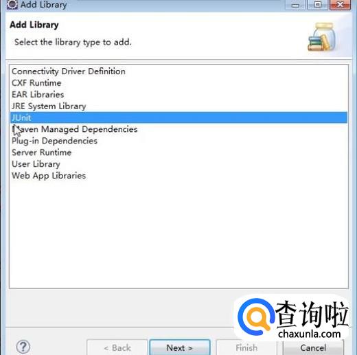 在弹出的Add Library界面我们选择Junit,然后一路下一步即可,如下图所示