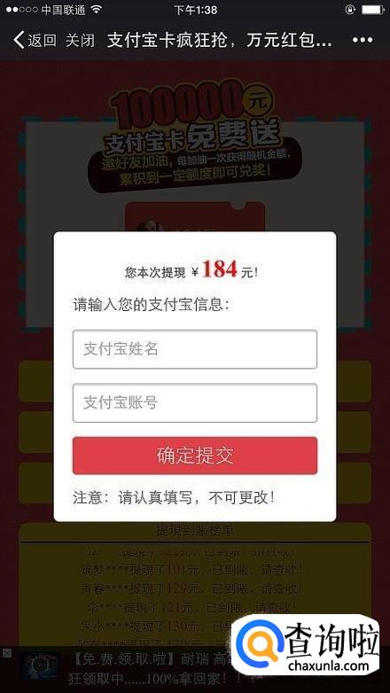 现在朋友圈还流行一种红包,就是与好友共抢的红包。这种红包也不要领!这类红包一般要求达到一定金额,比如100块才能提现,玩这种游戏要格外注意,红包页面的开发者是否正规,很可能只是一种吸引粉丝的骗局。
