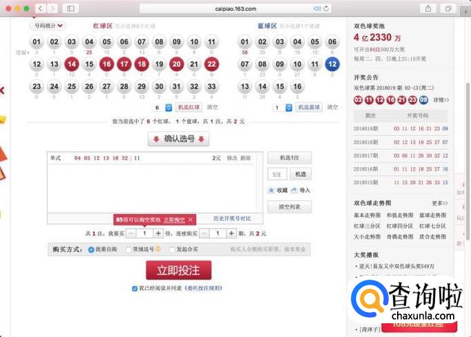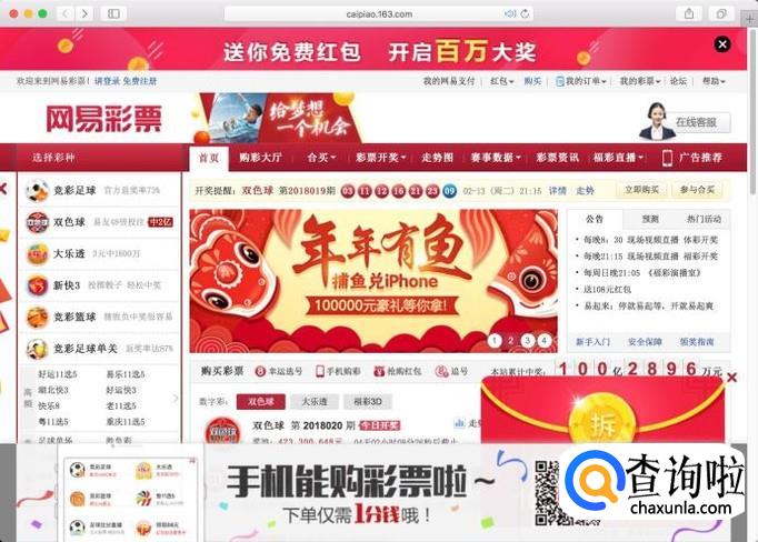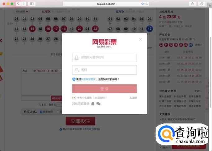 进入网易彩票网官方网站,在左侧彩种中点击“双色球”