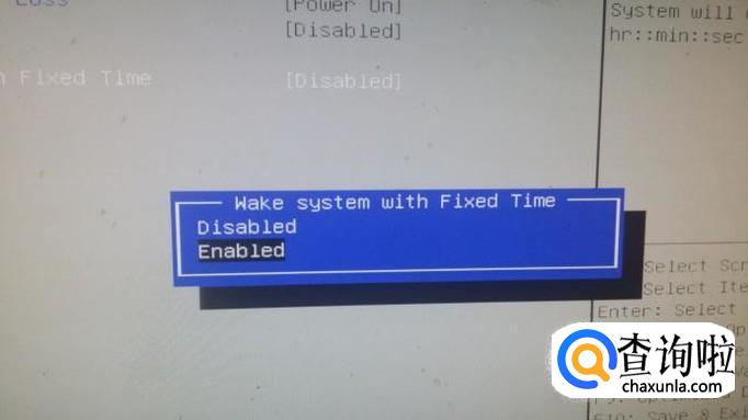 这样就又回到这个界面,接下来选“wake system with fixed time(唤醒系统延迟时间)”,按“enter确认”