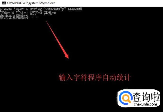 最后我们运行程序,输入一个字符以后,你就会发现程序已经自动统计好了各种字符的个数了,如下图所示