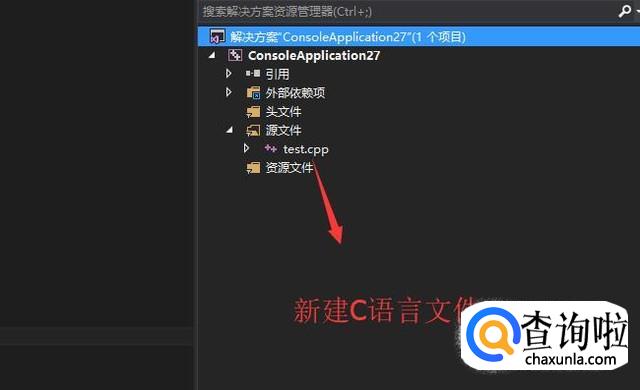 首先打开Visual Studio软件,新建一个Win32应用程序,并且在项目下新建C语言文件,如下图所示