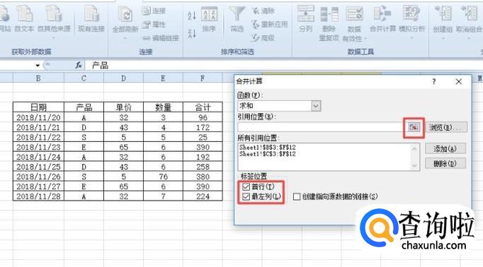 弹出的界面,我们点击勾选上首行和最左列,然后我们点击引用符号;