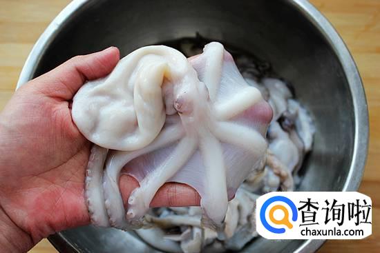 章鱼表面有很多粘液,一定要彻底清洗干净,并把内脏完全掏洗干净。