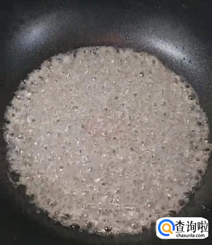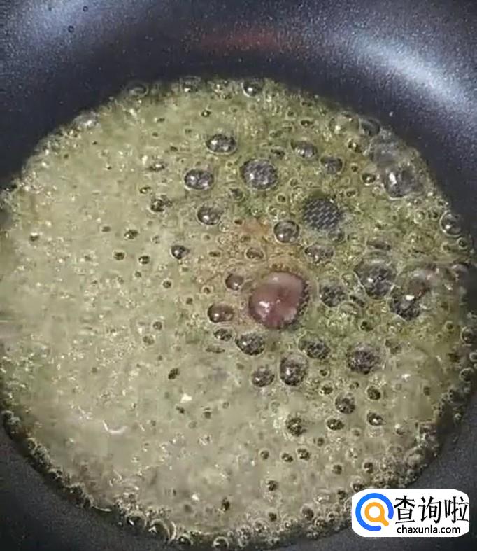 另外起锅,锅中中加入半碗水,半碗糖慢慢熬制成浅黄色,也就是类似于香油的颜色。